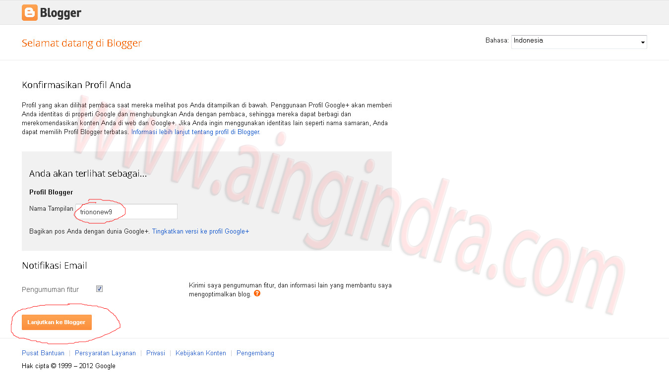 Langkah awal untuk membuat sebuah blog gratis adalah :